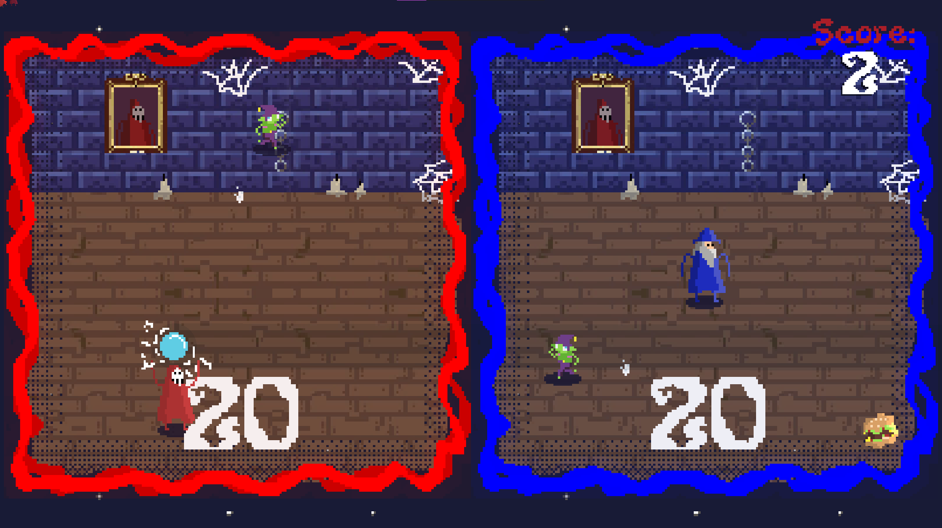 Comparer vos highscore n'est pas suffisant? Vous pouvez maintenant affrontez les sorciers de pacotilles qui vous servent d'amis en versus local! Ou deciderez vous de cooperer pour tuer un maximum de farfadet? Il suffit juste de brancher une manette pour le second joueur dans le nouveau mode DUEL!